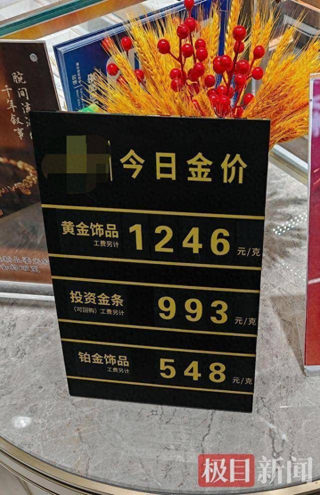 店员表示,目前金价有小幅回落,店内的黄金饰品挂牌价每克超1200元,工费另计,“不确定后面的金价涨势,对于婚嫁等需求人群来说,该买还是会买的。”